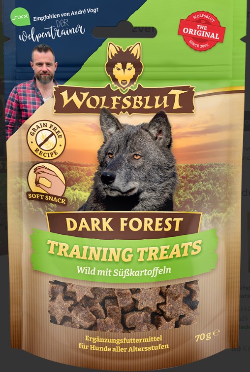 Skladem Wolfsblut Dog Training Treats Dark Forest 70g PeMi kód: 719902 EAN: 4260603785193 Měkká tréninková svačinka ve tvaru hvězdy se zvěřinou a sladkými bramborami a pečetí schválení od známého trenéra štěňat Andrého Vogta. Měli jsme skvělou příležitost popovídat si s psím profesionálem André Vogtem, známým "The Puppy Trainer", o perfektním pamlsku a zkombinovat ho s naším 87 Kč Do košíku