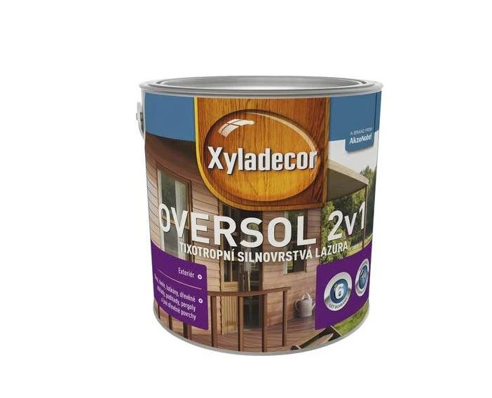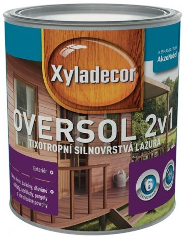 • Xyladecor Oversol 2v1 přírodní dřevo 750ml.Xyladecor Oversol 0,75 L 2v1 je unikátní silnovrstvá lazura na rozpouštědlové bázi pro použití v exteriéru. Díky své tixotropní konzistenci nestéká a ulehčuje aplikaci. Vytváří silný, elegantně polomatný film na povrchu dřeva
