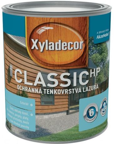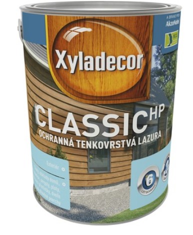 • Xyladecor Classic HP (High Protection) je ochranná tenkovrstva lazura na dřevo na rozpouštědlové bázi pro vnější použití. Obsahuje fungicidní složku, která účinně působí proti houbám způsobujícím modraní dřeva. Krémová konzistence usnadňuje natíraní a lépe penetruje