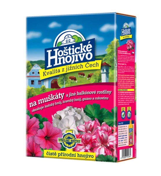 Skladem Hoštické hnojivo 1kg Muškáty PeMi kód: 729300 EAN: 8594003194764 Hoštické organické hnojivo obsahuje fermentovaný kravský a koňský hnůj, drcenou a granulovanou rohovinu a přírodní guáno, pocházející z trusu mořských ptáků. Jedná se o čistě přírodní (organický) produkt, bez přídavku průmyslově vyráběných složek 117 Kč Do košíku